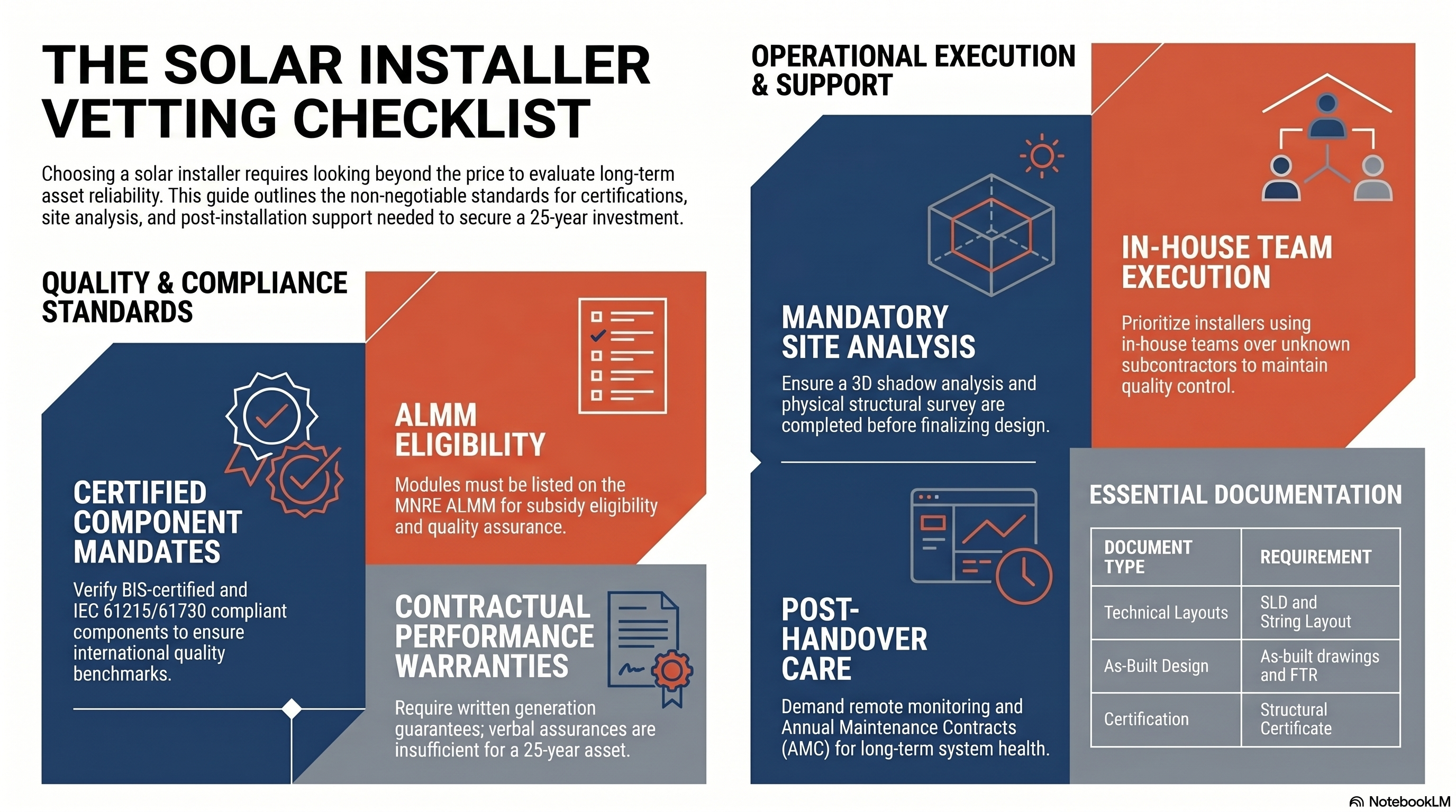 Warranty claim management: A quality installer maintains records and manages panel and inverter warranty claims on your behalf — not something you should have to pursue independently.